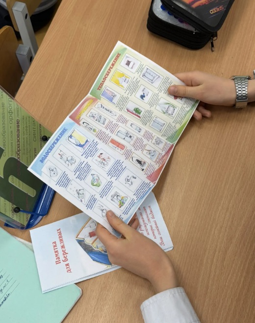 Младшие классы: Занятия прошли в игровой форме: ребята участвовали в викторинах, собирали пазлы на тему «Энергосберегающие приборы», смотрели познавательные мультфильмы. Особое внимание уделили простым правилам: выключать свет, когда уходишь из комнаты, не оставлять включёнными электроприборы, беречь воду.